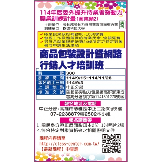 | 商品包裝設計暨網路行銷人才培訓班 |
