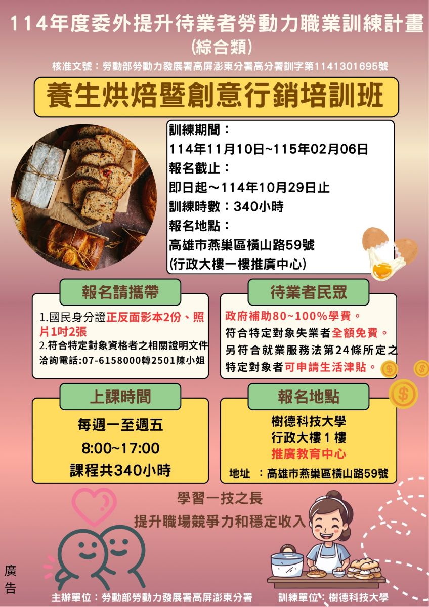 養生烘焙暨創意行銷培訓班】開始招生囉!