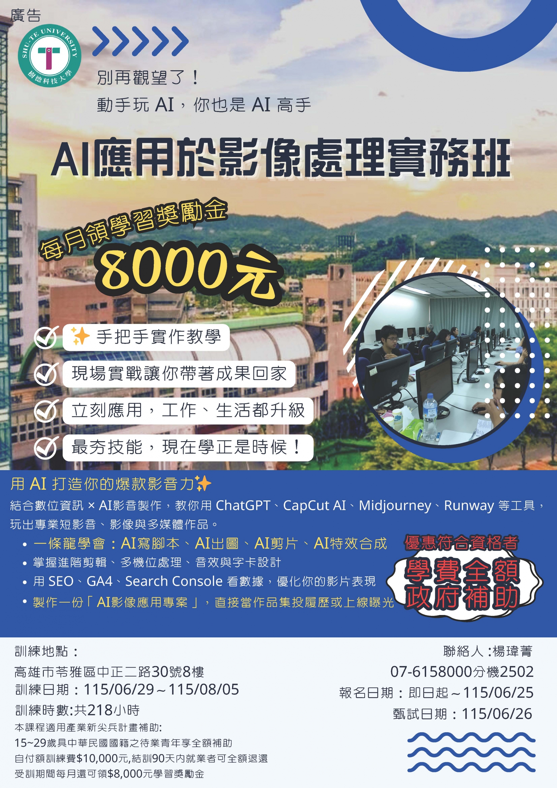 勞動部補助課程-產業新尖兵計畫『AI應用於影像處理實務班』