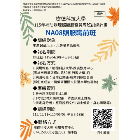 115年補助辦理照顧服務員專班訓練計畫-NA08照服職前班